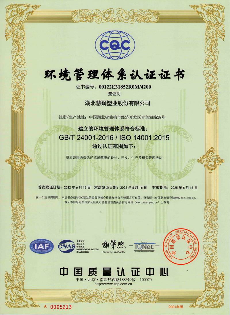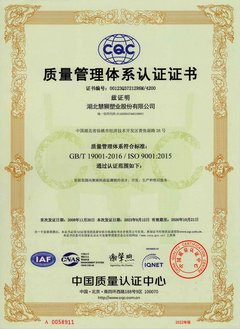 湖北慧獅塑業(yè)股份有限公司是一家專(zhuān)業(yè)從事研發(fā)、生產(chǎn)、銷(xiāo)售高性能聚烯烴流延薄膜的高新技術(shù)企業(yè)。